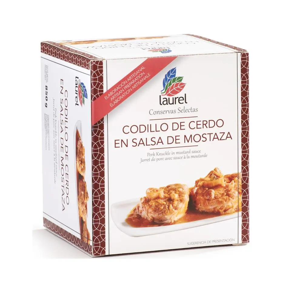 Délicieux jarret de porc cuit lentement de manière 100% traditionnelle, baigné dans une sauce à la moutarde exquise et originale qui apporte une touche sophistiquée et étonnamment savoureuse. Une combinaison parfaite de jutosité, de tendresse et de saveur intense qui séduira les palais les plus exigeants.